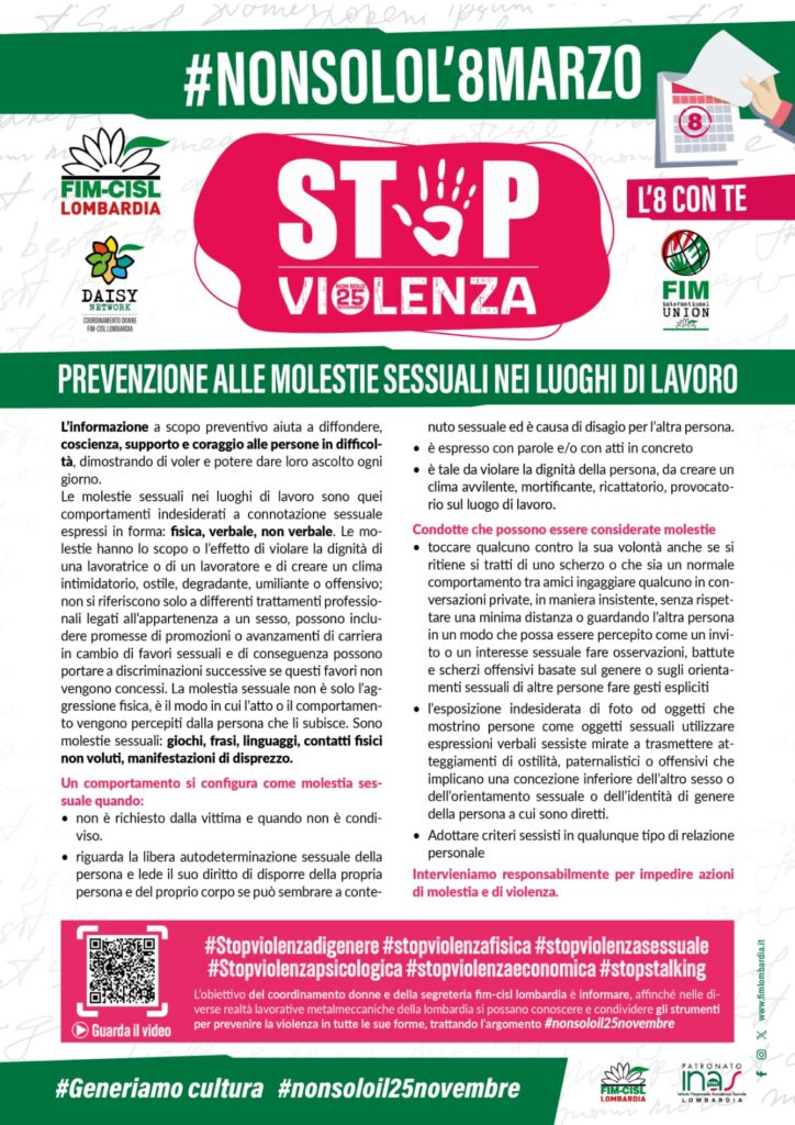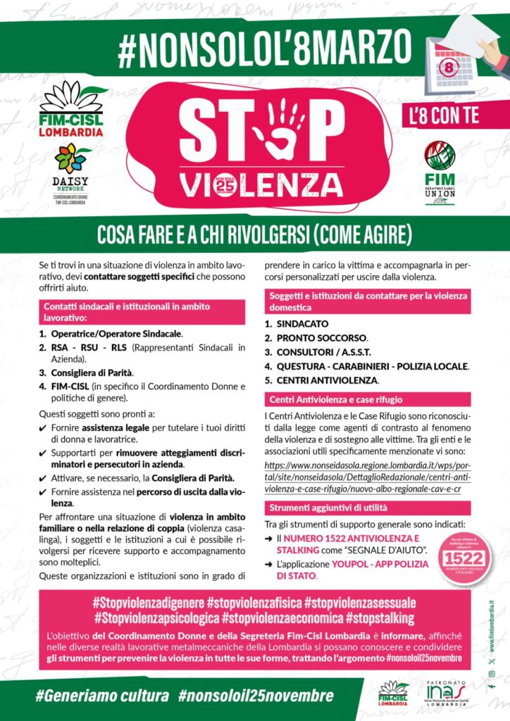 In occasione della Giornata Internazionale per l’eliminazione della violenza contro le donne, come CISL Lombardia intendiamo valorizzare e dare visibilità alle numerose iniziative promosse dalle nostre strutture territoriali. Azioni concrete che testimoniano, giorno dopo giorno, l’impegno dell’organizzazione nel contrastare ogni forma di violenza e nel sostenere una cultura di rispetto, tutela e dignità per tutte le donne