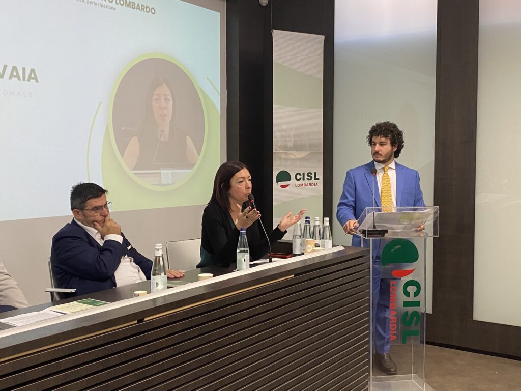 A seguire si è tenuta una tavola rotonda, moderata da Francesco GirolimettoDirettore di BiblioLavoro, con la partecipazione di Enzo MesagnaSegretario Regionale CISL Lombardia, Marco AccorneroSegretario Generale CLAAI Lombardia, Stefano BindaSegretario CNA Lombardia, Roberta VaiaSegretaria CISL Lombardia e Carlo PiccinatoSegretario Generale Confartigianato Lombardia.